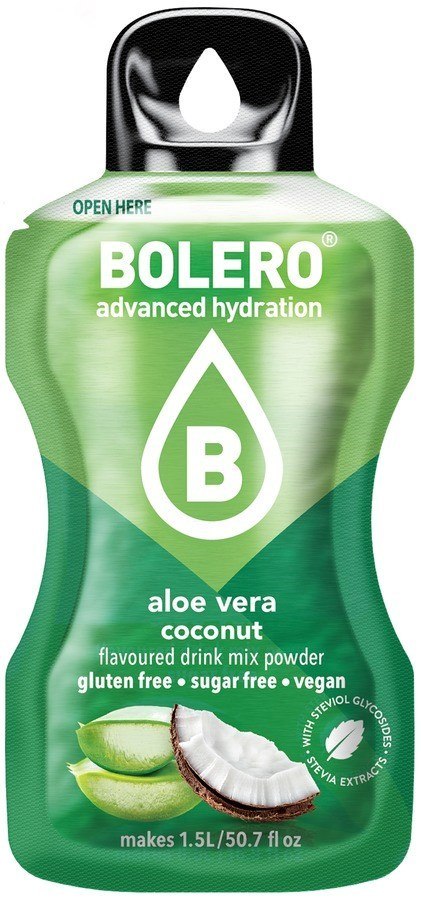 | Skład | kwasy: kwasek cytrynowy, kwas jabłkowy; włókno inulinowe; aloes w proszku; aromaty; substancje słodzące: acesulfam k, sukraloza, glikozydy stewiolowe ze stewii; regulator kwasowości: cytrynian sodu; substancja przeciwzbrylająca: fosforan wapnia; substancja zagęszczająca: guma guar, guma arabska; kwas l-askorbinowy (witamina c). |